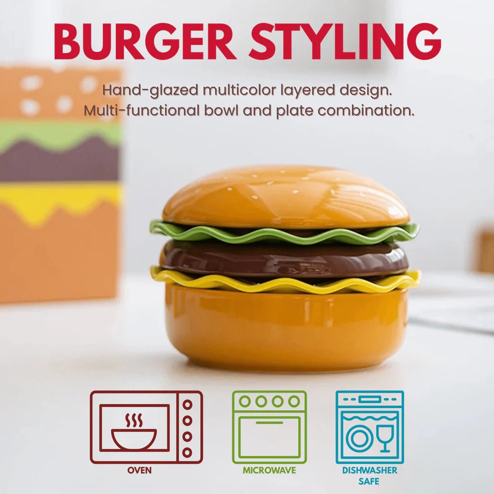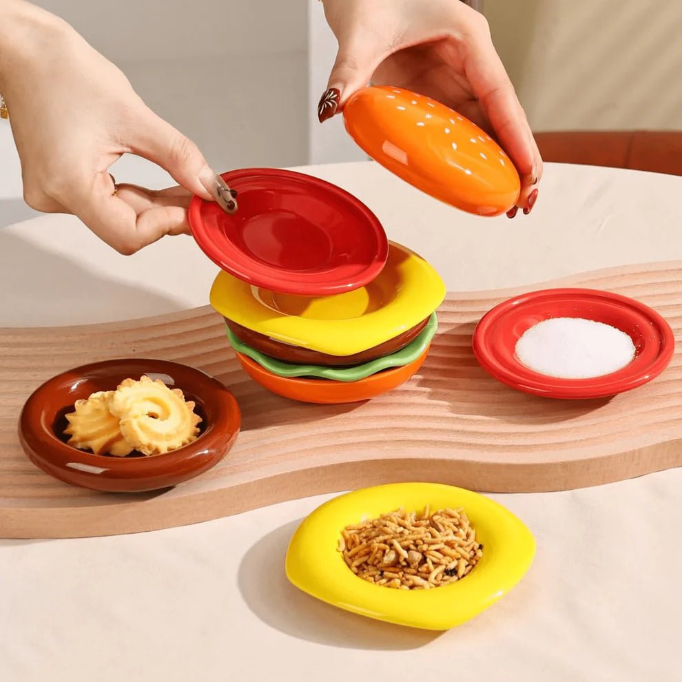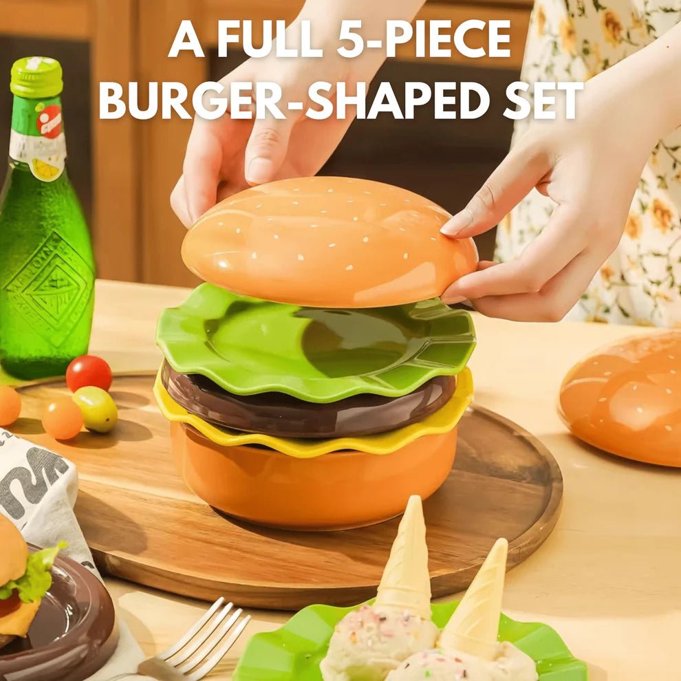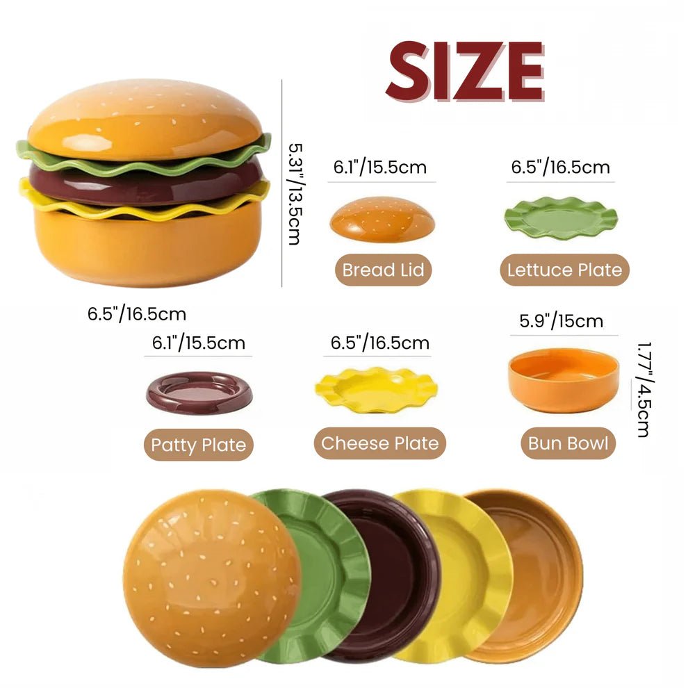 A creative fusion of style and function — each layer is artfully crafted to resemble a gourmet burger, from bun to patty. This playful yet sophisticated design transforms ordinary dining into a memorable experience, sparking joy at every table setting.