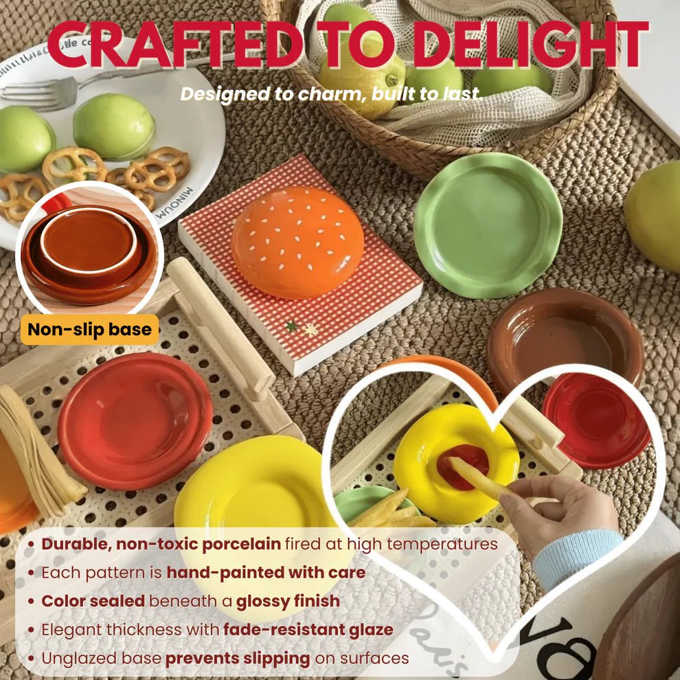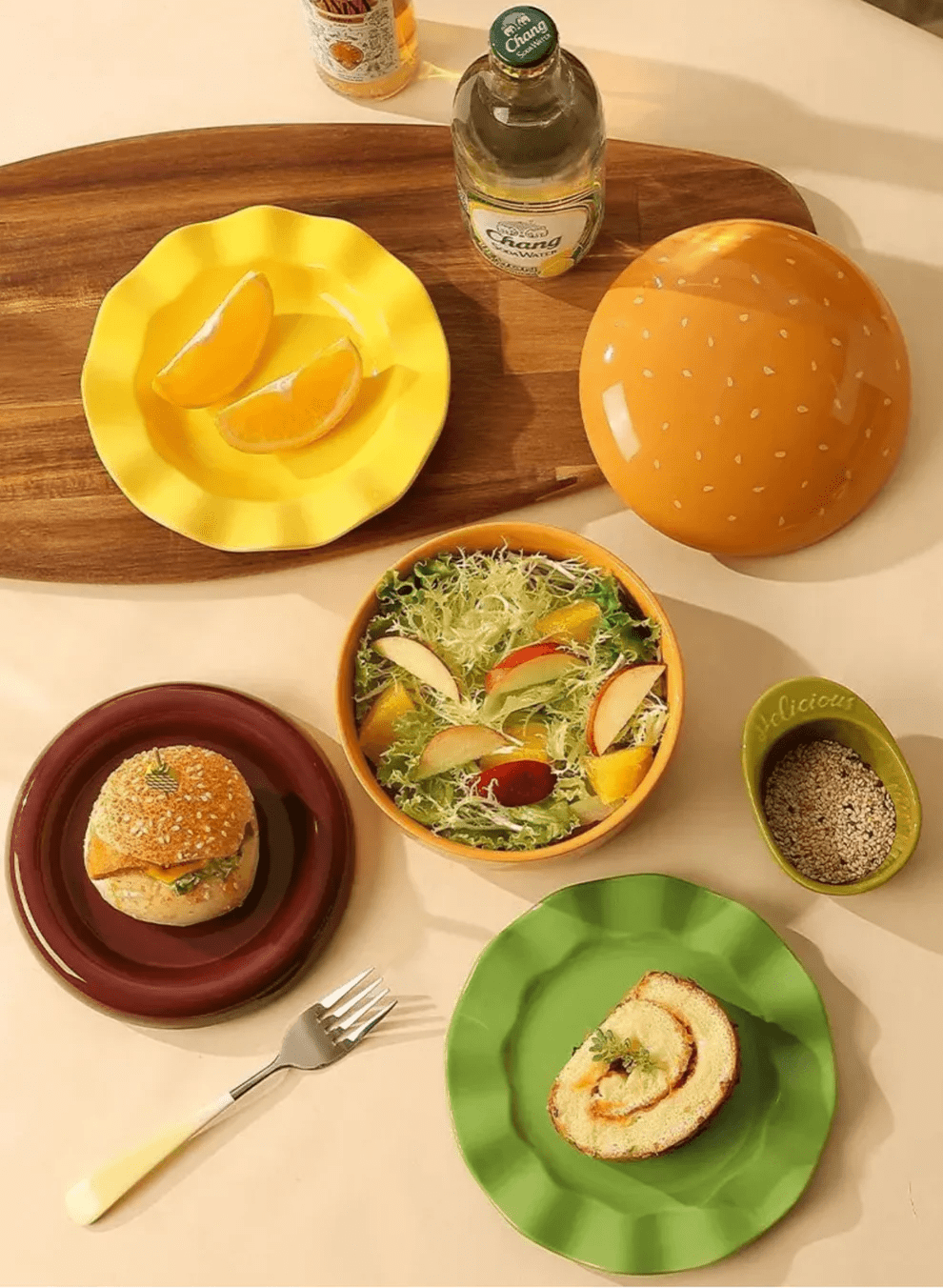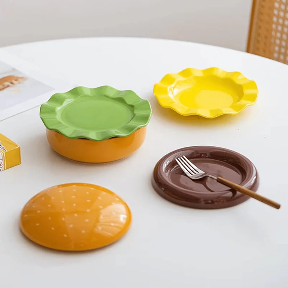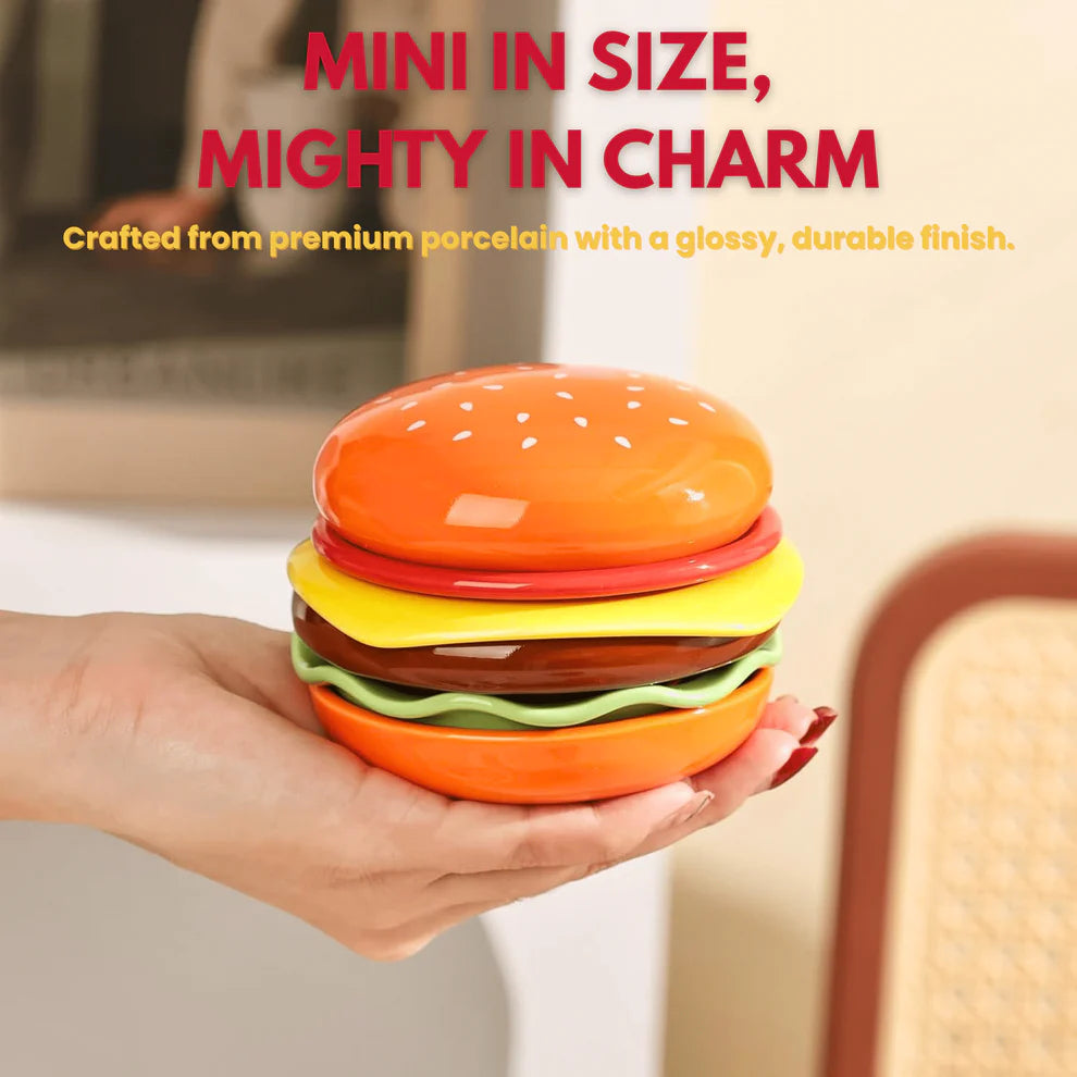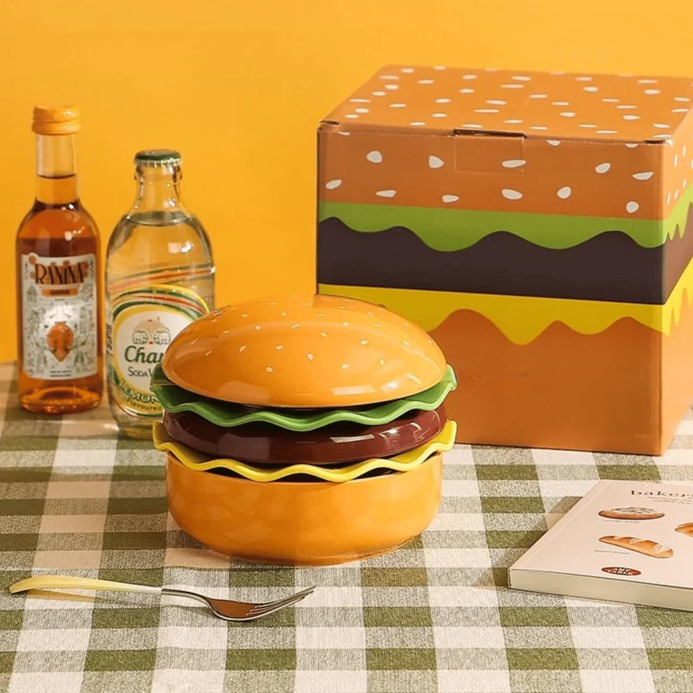A creative fusion of style and function — each layer is artfully crafted to resemble a gourmet burger, from bun to patty. This playful yet sophisticated design transforms ordinary dining into a memorable experience, sparking joy at every table setting.
